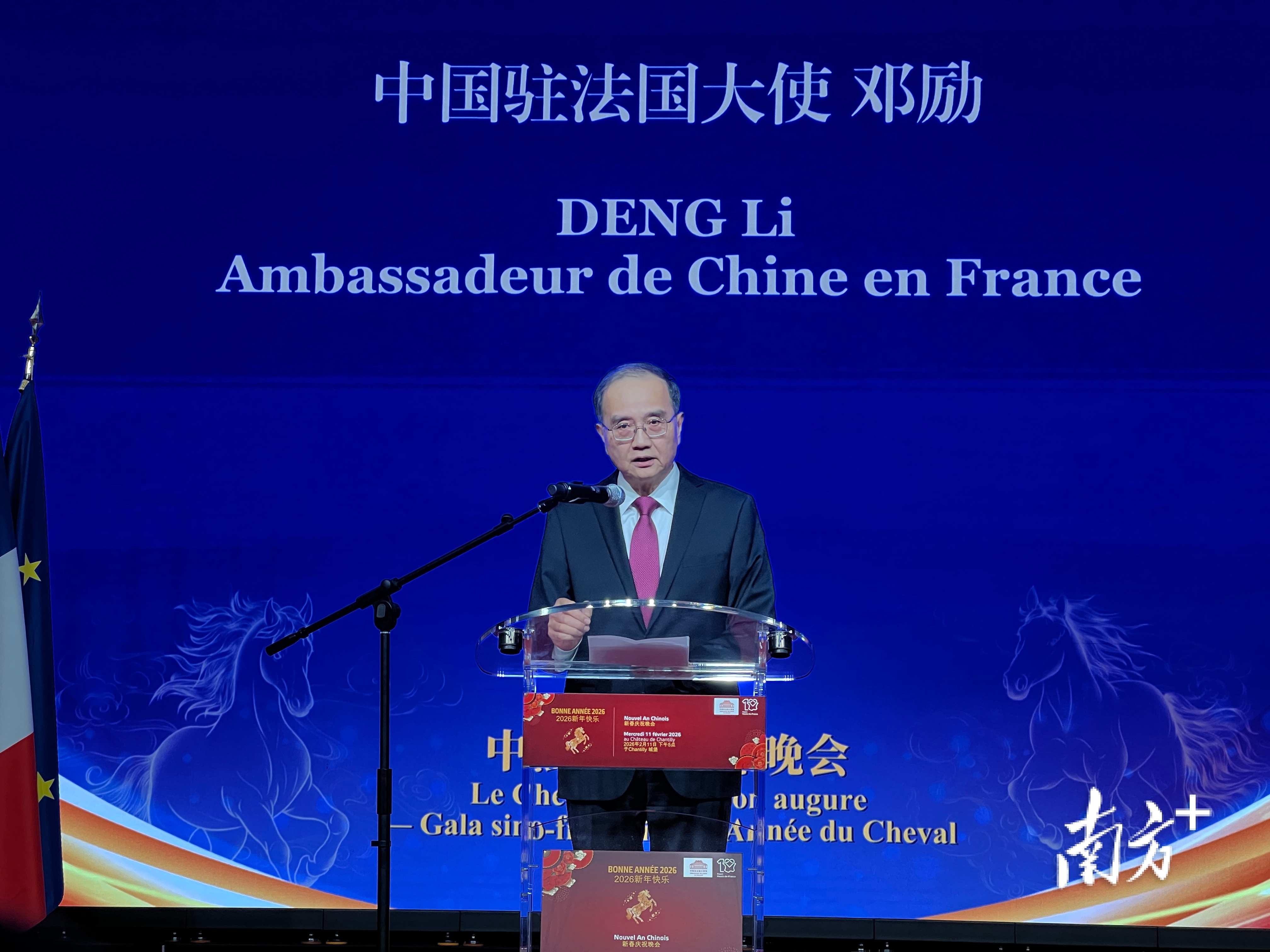 值得一提的是,晚会举办地——尚蒂伊赛马场大马厩,是欧洲最宏伟的马厩之一,也是世界上最重要的马术中心之一,为粤茶出海之旅增添了法式浪漫与历史厚重感。“我想不出比尚蒂伊城堡大马厩更适合迎接中国马年春节到来的场地。置身于这场活动,我们都感受到了法国朋友们对中国文化的热情,这不仅仅是一场春节演出,也是两种文化之间的一场对话。”中国驻法国大使邓励如是说。